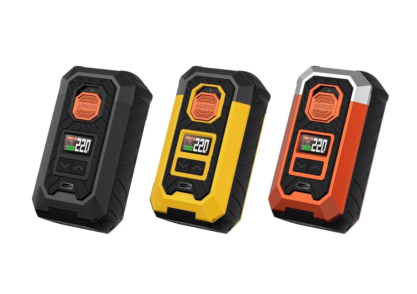 Vaporesso Armour Max Mod Kit The Armour Max Kit is made entirely of TPU material to be durable and shatterproof. Its output power is up to 220W, which is achieved with 2 x 21700 or 18650 (+adapter) batteries. F(t)/Pul/ECO/TC-TI/TC-SS/TC-NI modes powered by the AXON chip allow you to customize your vaping experience. To solve the fire button not only to activate, but also to lock the device. And on the 0.96-inch TFT screen, the system displays all the necessary information crystal clear. Combined with the iTank with a capacity of 8 ml, it provides easy liquid filling, while it is compatible with GTi boiler inserts using COREX heating technology and ensures a 50% longer coil life.Parameters:Made of TPU material to be durable and shatterproofBattery: 2 x 21700/18650 (not included)Output power: 220WType-C connectionAXON chipOutput modes: F(t) / Pulse / ECO / TC-T I/ TC-SS / TC-NIFire button jammingDisplay: 0.96" TFTVolume: 8 mlEasy and with a charging systemCompatible with GTi Coil using COREX heating technologyProvides a more precise taste and 50% longer roll lifePackage contents:1 x Vaporesso Armour Max Mod2 x 18650 Sleeve (Inside the MOD) 1 x Type C Cable 1 x User Manual & Warranty Card 1 x Safety Manual 1 x Reminder Card